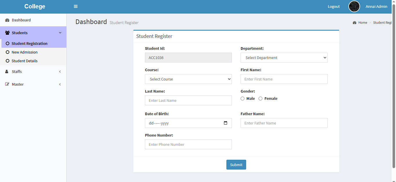 System Admin - Handles all registrations, course setup, departments, and academic structuring.