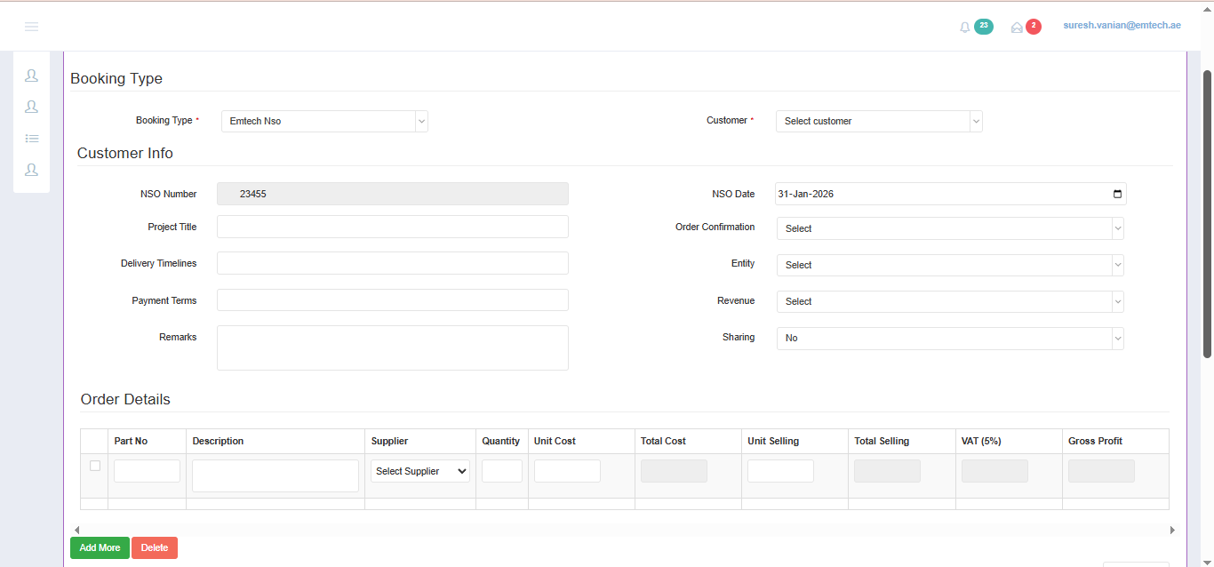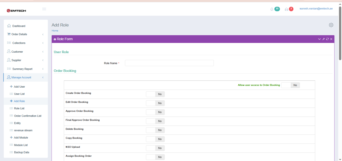 User/Staff Login – Access to create order bookings and manage assigned operational tasks.