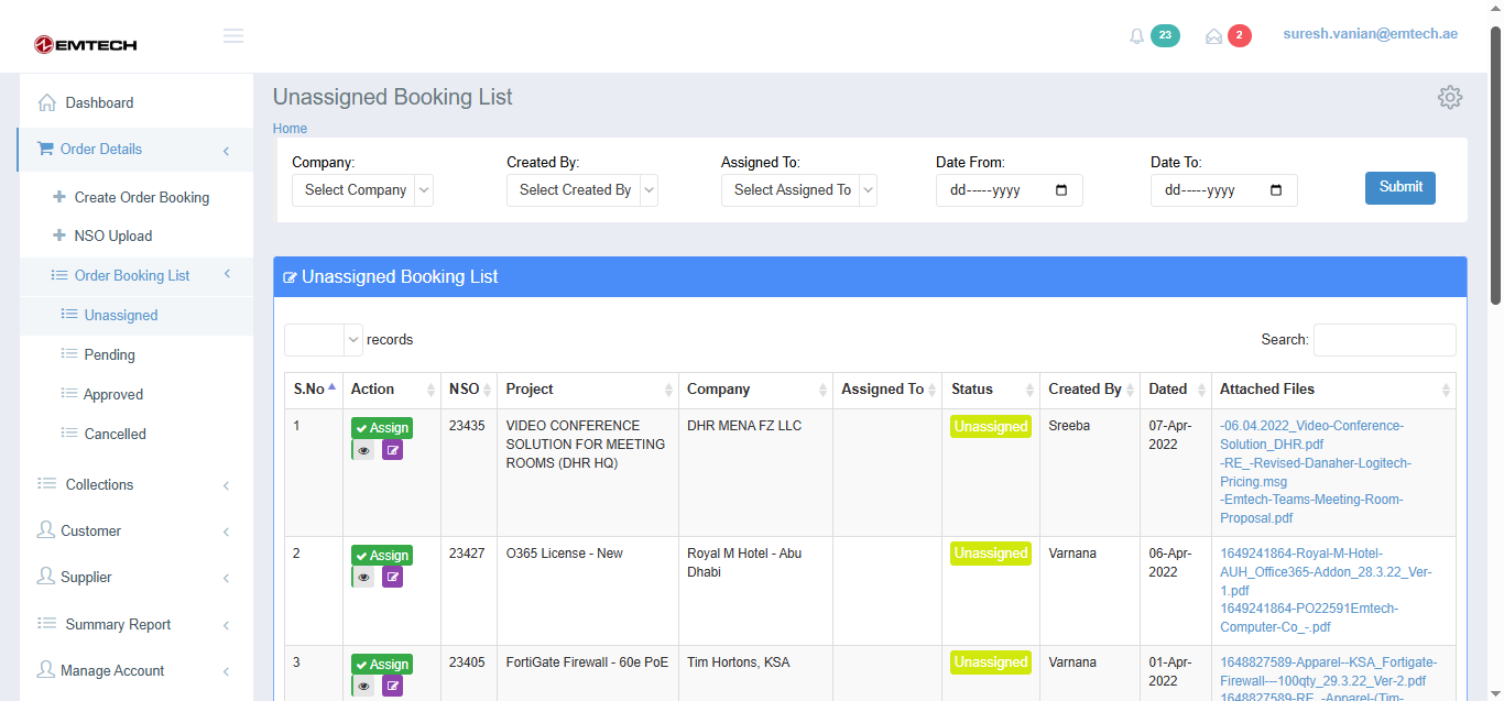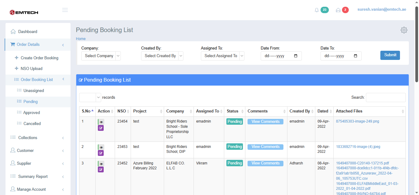 Order Booking List