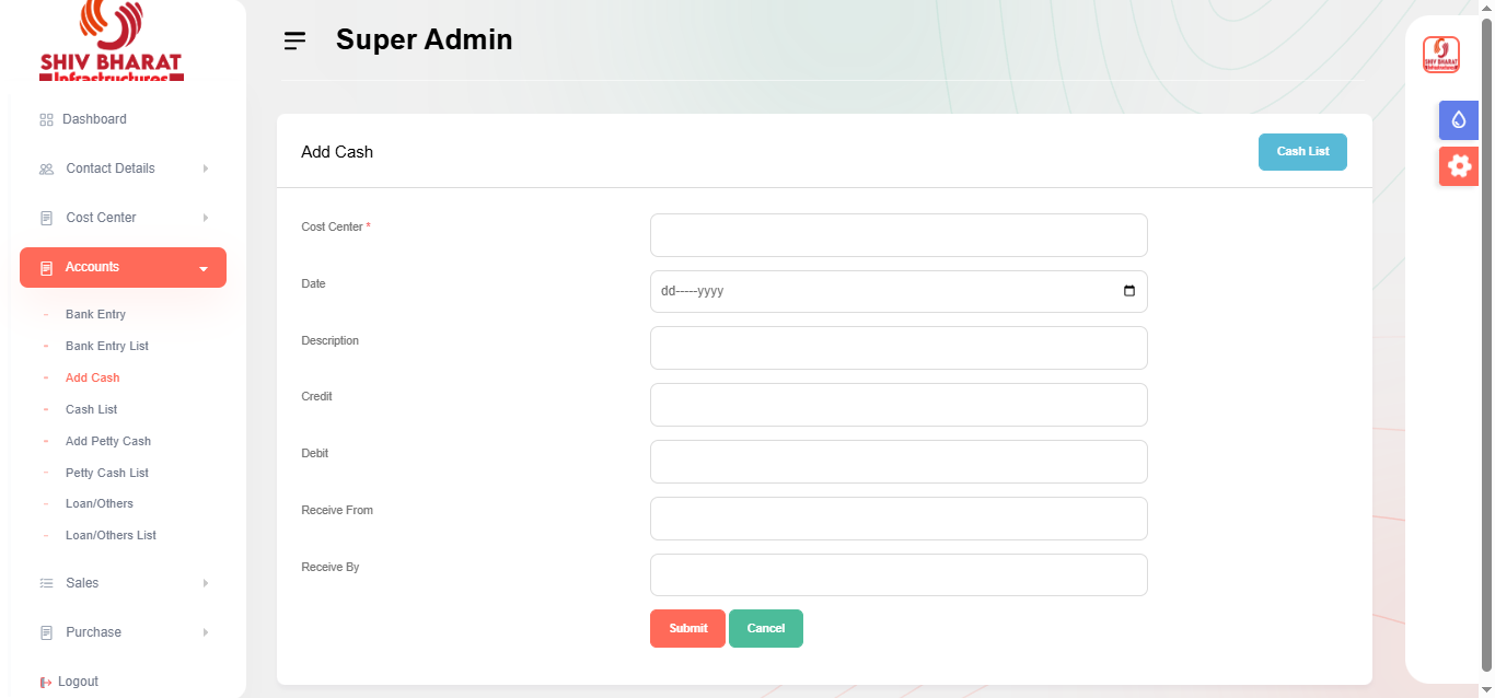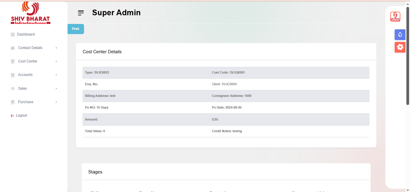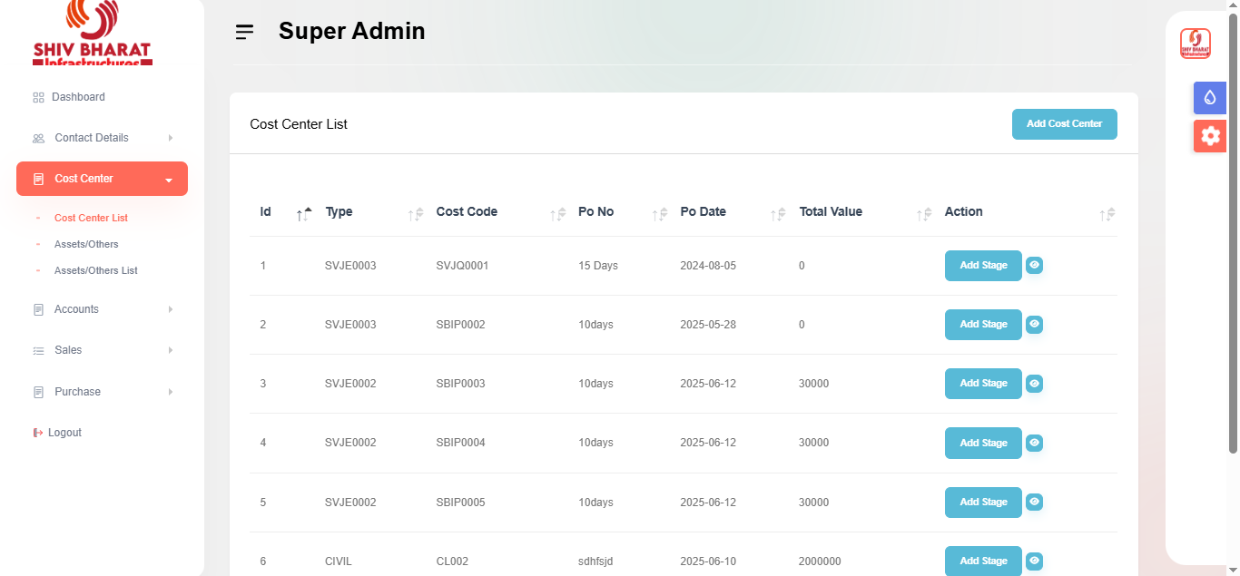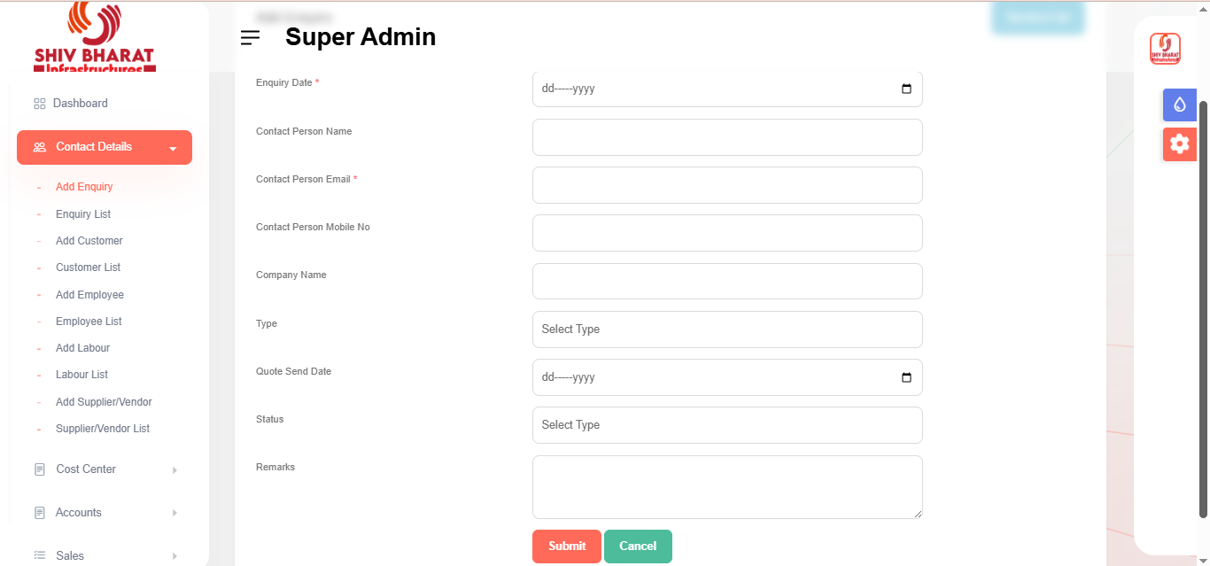 Construction ERP System is a web-based business management solution designed to handle enquiries, customers, employees, suppliers, accounting, sales, purchases, cost centers, and financial transactions in a centralized platform.