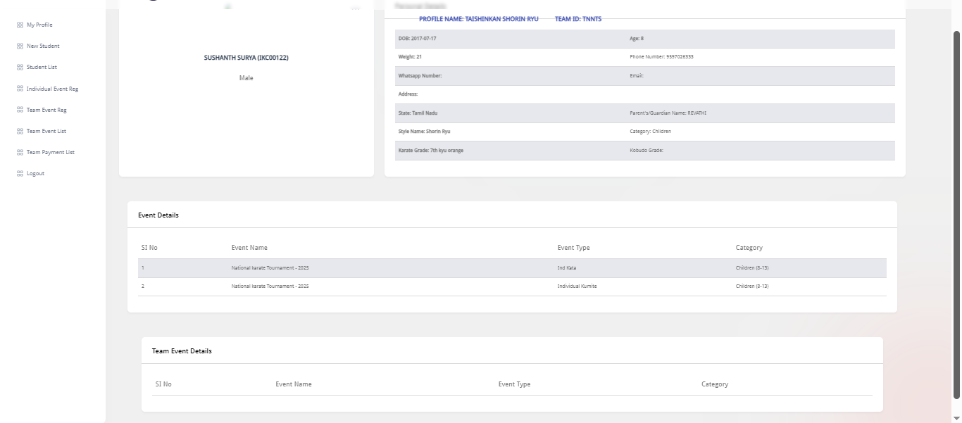 A complete digital platform to manage karate students, teams, events, scoring, registrations, payments, and tournament results.