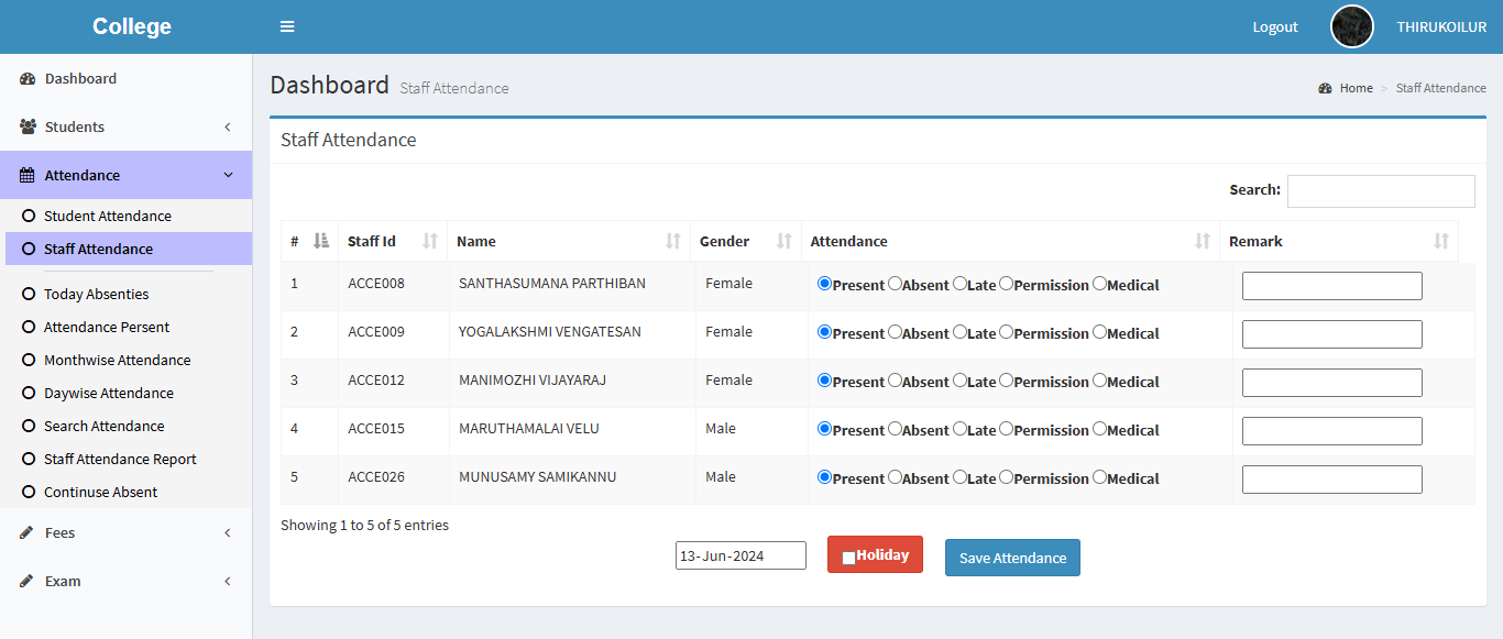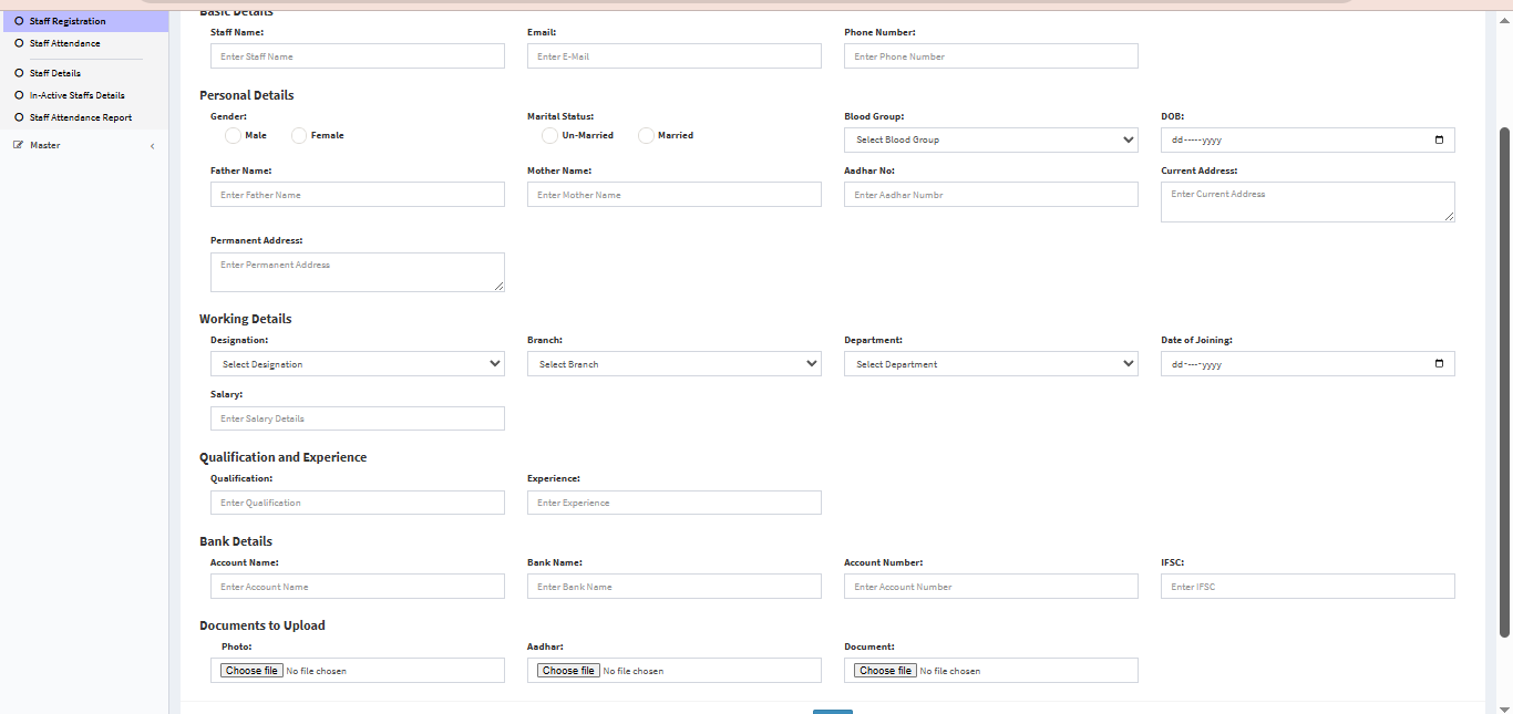 Staff Login - Allows staff to upload notes, give homework, and apply for leave.