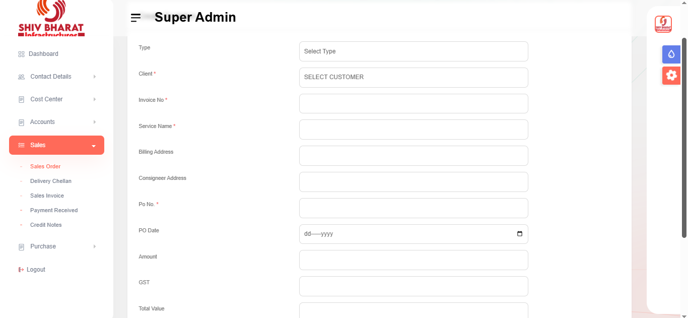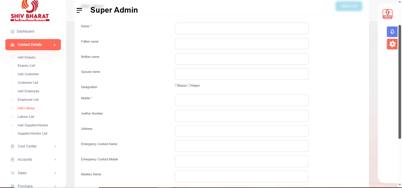 The Infrastructures ERP System is a comprehensive enterprise solution developed to streamline construction and infrastructure business operations. The system integrates contact management, employee and labour tracking, supplier management, cost center monitoring, asset management, banking transactions, petty cash handling, sales and purchase workflows, GST billing, vendor payments, and recurring expense tracking. With multi-role login access for Admin, Supplier, and Employees, the system ensures structured workflow management, financial transparency, and operational efficiency across projects.