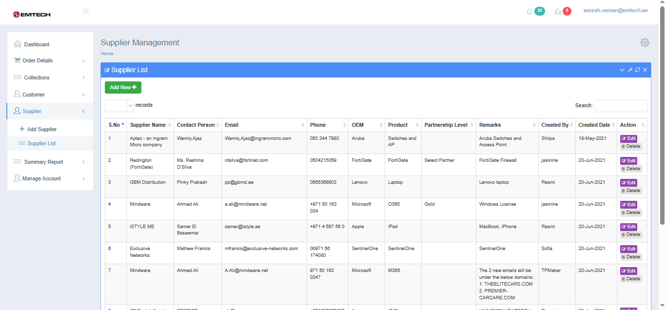 Supplier List