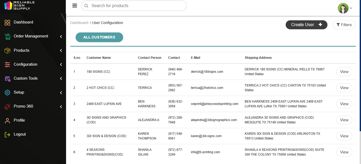 User Configuration (all customer,add,edit)