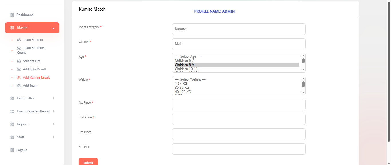 Add Kumite result