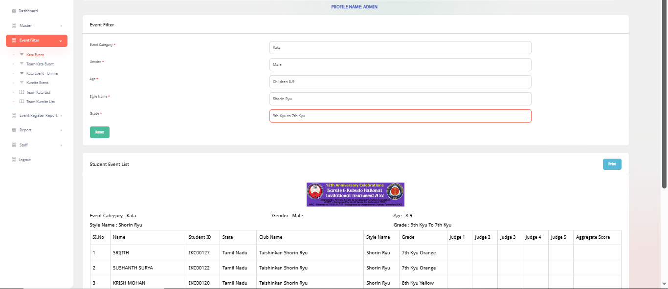 A complete digital platform to manage karate students, teams, events, scoring, registrations, payments, and tournament results.