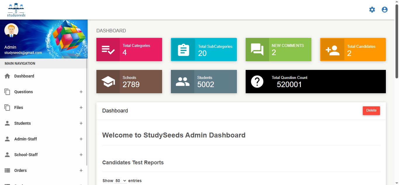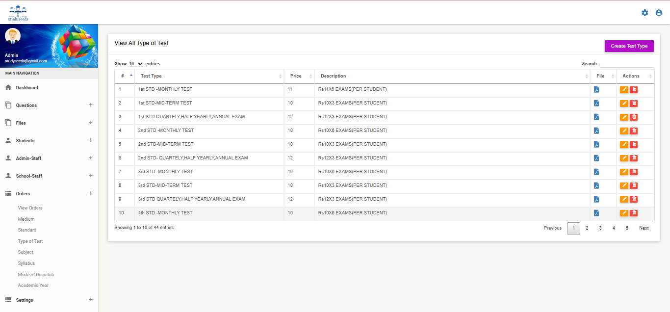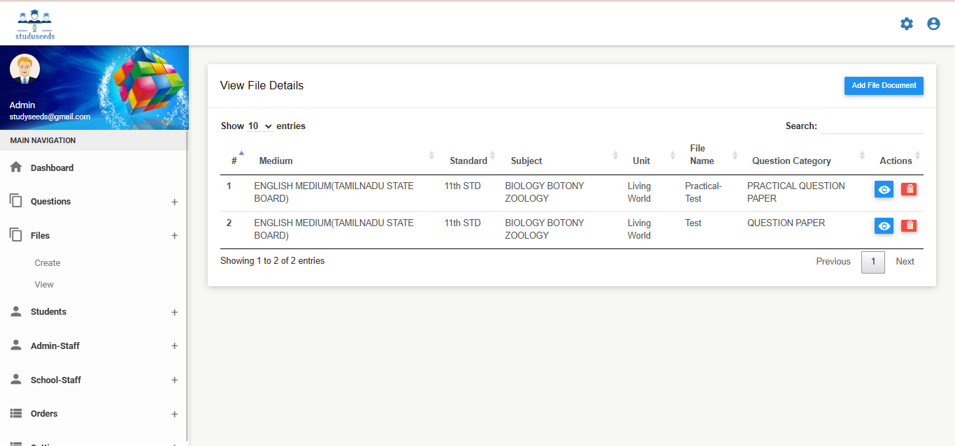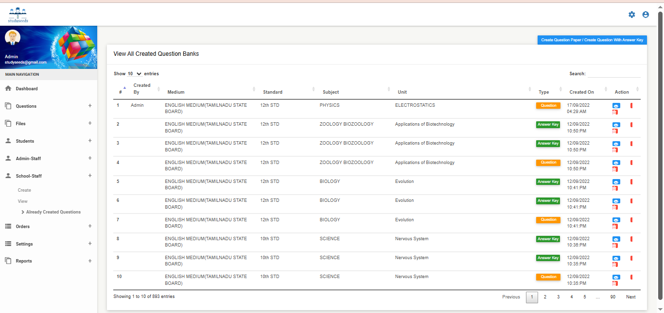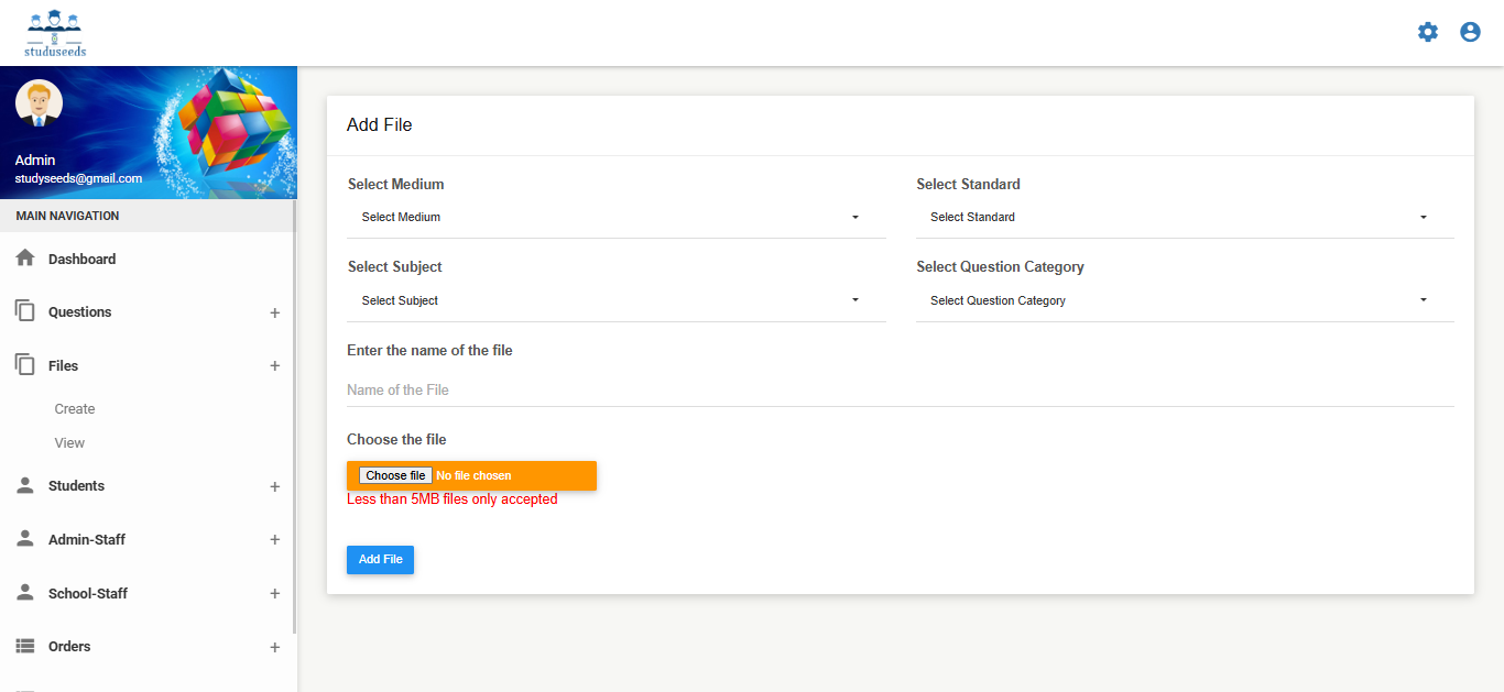 It is a comprehensive educational technology platform designed to streamline question bank management, exam paper generation, and academic assessment processes for schools and institutions. The system allows administrators to: Create and manage question banks Generate manual or automatic question papers Configure question types, levels, units, and syllabus Manage students and staff Provide digital learning resources such as videos, e-books, and teacher materials Generate detailed test reports and analytics With customizable academic settings (medium, standard, subject, test type, academic year), Studyseeds enhances assessment accuracy, reduces manual effort, and improves overall academic performance tracking. This system is ideal for schools, coaching centers, and educational institutions.