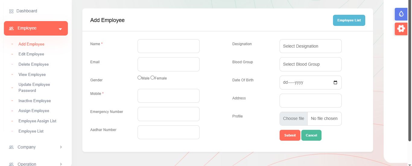 Employee Login Designed for on-field or in-office employees to manage their tasks.
